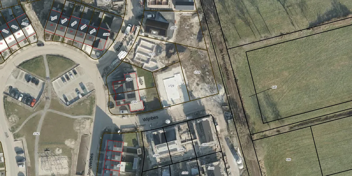 Het perceel waarop Wijnbes 1 staat heeft een oppervlakte van 373 m². Dit is een groot perceel. De perceeloppervlakte wordt geregistreerd door het Kadaster. Gedetailleerde informatie over de maten van dit perceel kunt u vinden in het rapport Kadastrale kaart met maatvoering van Wijnbes 1.