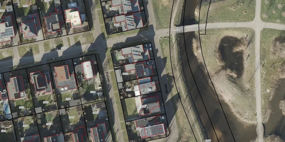 Het perceel waarop Winde 14 staat heeft een oppervlakte van 338 m². Dit is een groot perceel. De perceeloppervlakte wordt geregistreerd door het Kadaster. Gedetailleerde informatie over de maten van dit perceel kunt u vinden in het rapport Kadastrale kaart met maatvoering van Winde 14.