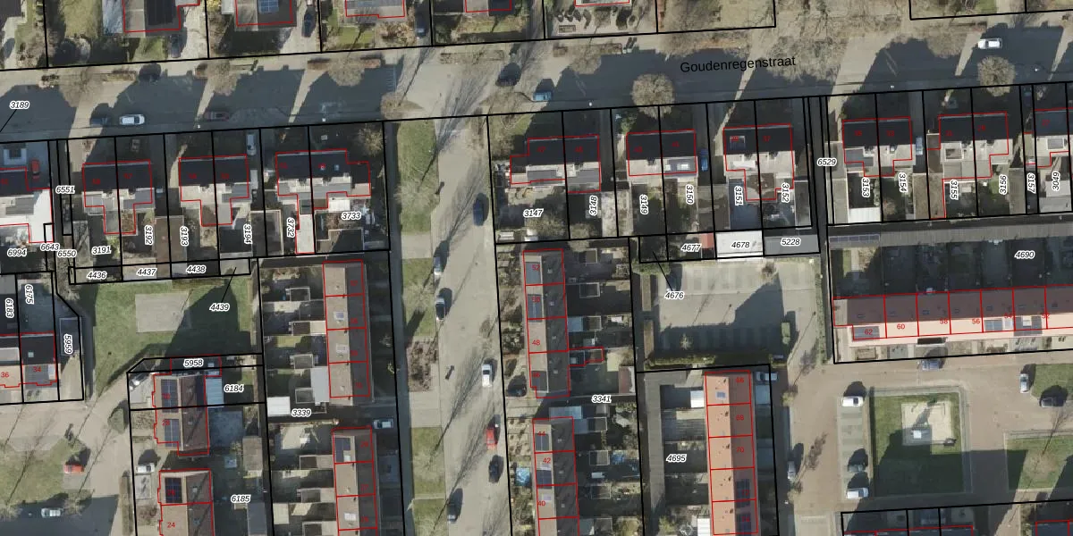 Het perceel waarop Wingerdstraat 52 staat heeft een oppervlakte van 1442 m². Dit is een zeer groot perceel. De perceeloppervlakte wordt geregistreerd door het Kadaster. Gedetailleerde informatie over de maten van dit perceel kunt u vinden in het rapport Kadastrale kaart met maatvoering van Wingerdstraat 52.