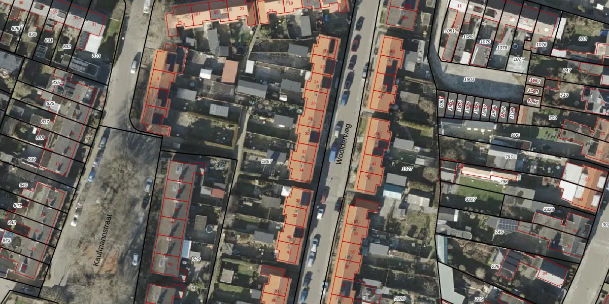 Het perceel waarop Woolderweg 32 staat heeft een oppervlakte van 6025 m². Dit is een zeer groot perceel. De perceeloppervlakte wordt geregistreerd door het Kadaster. Gedetailleerde informatie over de maten van dit perceel kunt u vinden in het rapport Kadastrale kaart met maatvoering van Woolderweg 32.