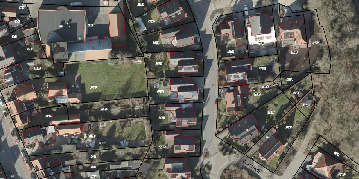 Het perceel waarop Zuid Esch 36 staat heeft een oppervlakte van 452 m². Dit is een groot perceel. De perceeloppervlakte wordt geregistreerd door het Kadaster. Gedetailleerde informatie over de maten van dit perceel kunt u vinden in het rapport Kadastrale kaart met maatvoering van Zuid Esch 36.