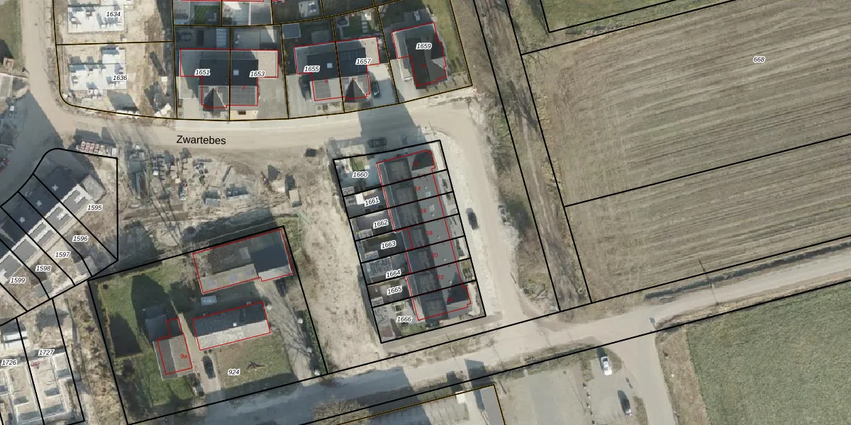 Zwartebes 16 is gelegen op kadastraal perceel BNE00C1662. Deze kadastrale aanduiding is uniek en wordt gebruikt door het Kadaster om eigendomsrechten en andere zakelijke rechten vast te leggen. Het perceel maakt onderdeel uit van de kadastrale gemeente Borne.