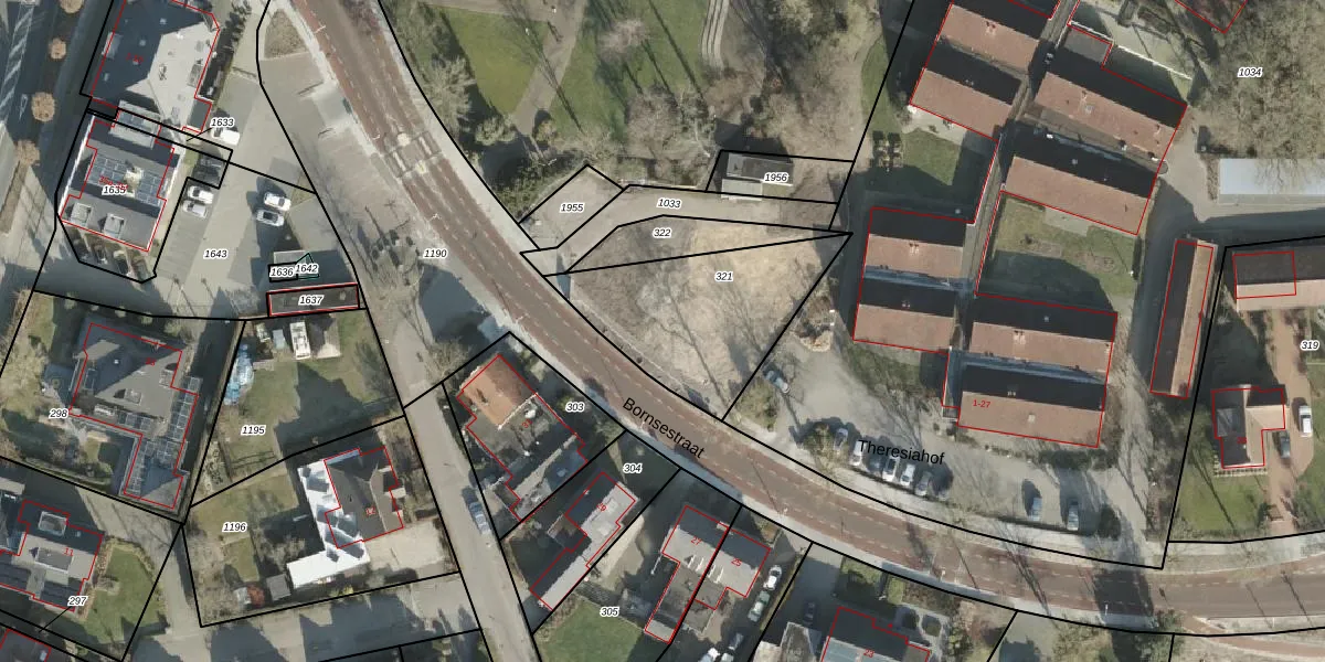 Bornsestraat 42 is gelegen op kadastraal perceel AML01O321. Deze kadastrale aanduiding is uniek en wordt gebruikt door het Kadaster om eigendomsrechten en andere zakelijke rechten vast te leggen. Het perceel maakt onderdeel uit van de kadastrale gemeente Ambt-Almelo.
