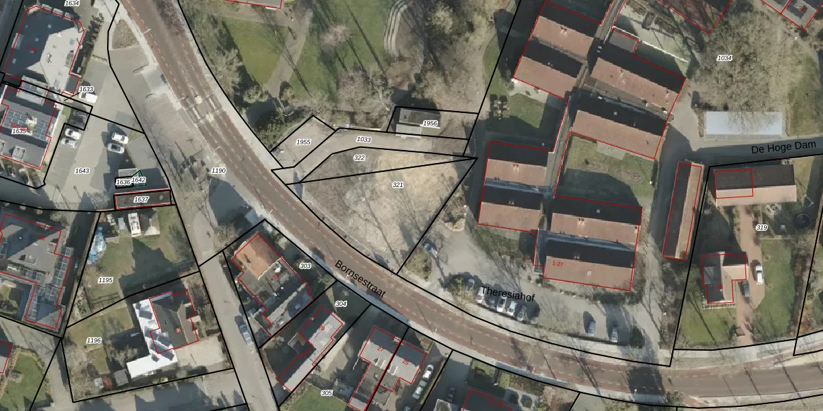 Het perceel waarop Bornsestraat 48 staat heeft een oppervlakte van 635 m². Dit is een groot perceel. De perceeloppervlakte wordt geregistreerd door het Kadaster. Gedetailleerde informatie over de maten van dit perceel kunt u vinden in het rapport Kadastrale kaart met maatvoering van Bornsestraat 48.
