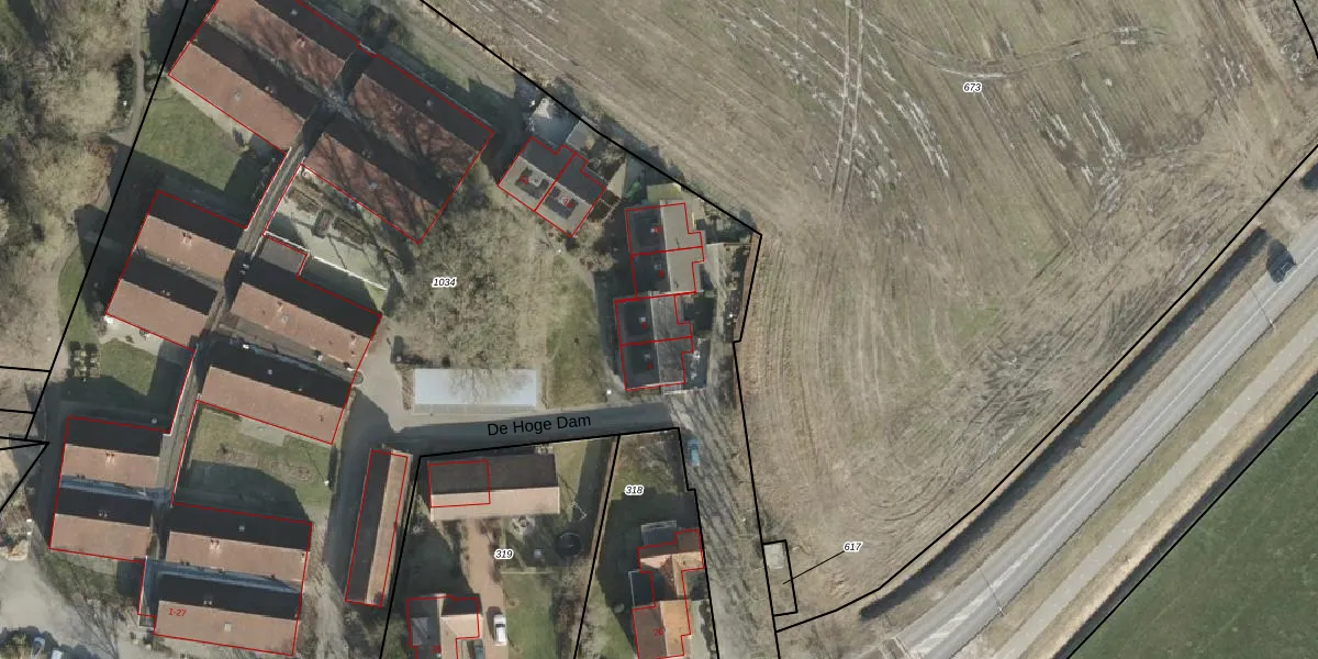 Het perceel waarop De Hoge Dam 6 staat heeft een oppervlakte van 9186 m². Dit is een zeer groot perceel. De perceeloppervlakte wordt geregistreerd door het Kadaster. Gedetailleerde informatie over de maten van dit perceel kunt u vinden in het rapport Kadastrale kaart met maatvoering van De Hoge Dam 6.