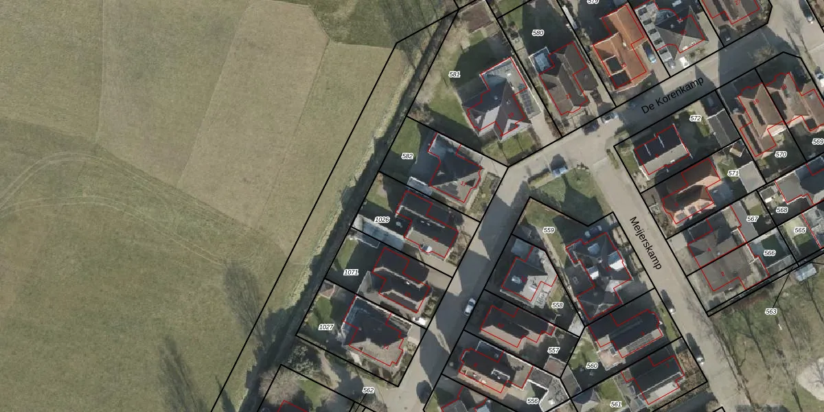 Het perceel waarop De Korenkamp 15 staat heeft een oppervlakte van 420 m². Dit is een groot perceel. De perceeloppervlakte wordt geregistreerd door het Kadaster. Gedetailleerde informatie over de maten van dit perceel kunt u vinden in het rapport Kadastrale kaart met maatvoering van De Korenkamp 15.