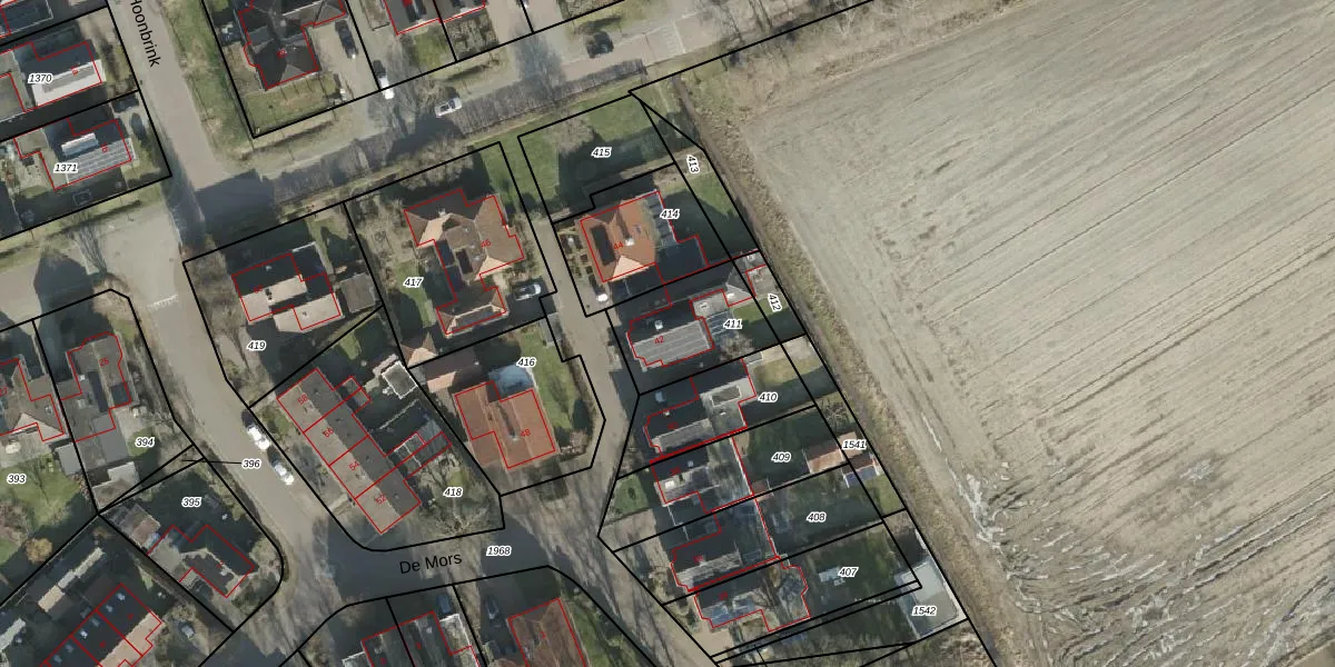 Het perceel waarop De Mors 42 staat heeft een oppervlakte van 311 m². Dit is een groot perceel. De perceeloppervlakte wordt geregistreerd door het Kadaster. Gedetailleerde informatie over de maten van dit perceel kunt u vinden in het rapport Kadastrale kaart met maatvoering van De Mors 42.