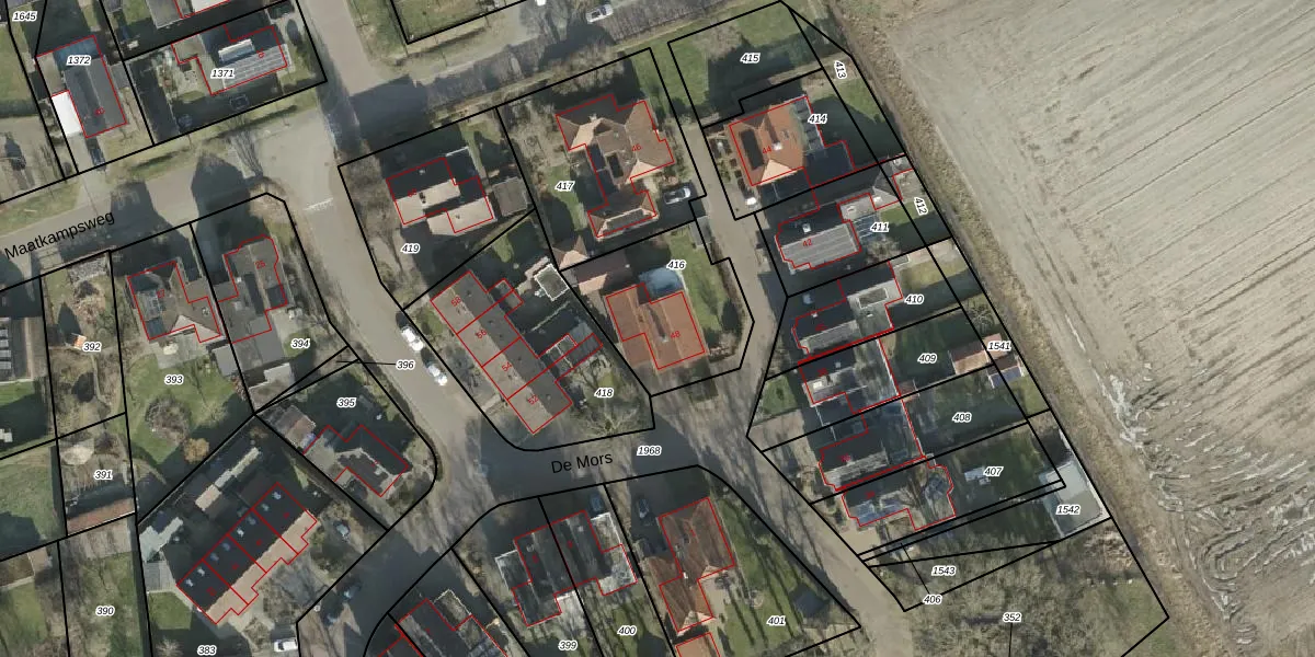 Het perceel waarop De Mors 48 staat heeft een oppervlakte van 467 m². Dit is een groot perceel. De perceeloppervlakte wordt geregistreerd door het Kadaster. Gedetailleerde informatie over de maten van dit perceel kunt u vinden in het rapport Kadastrale kaart met maatvoering van De Mors 48.