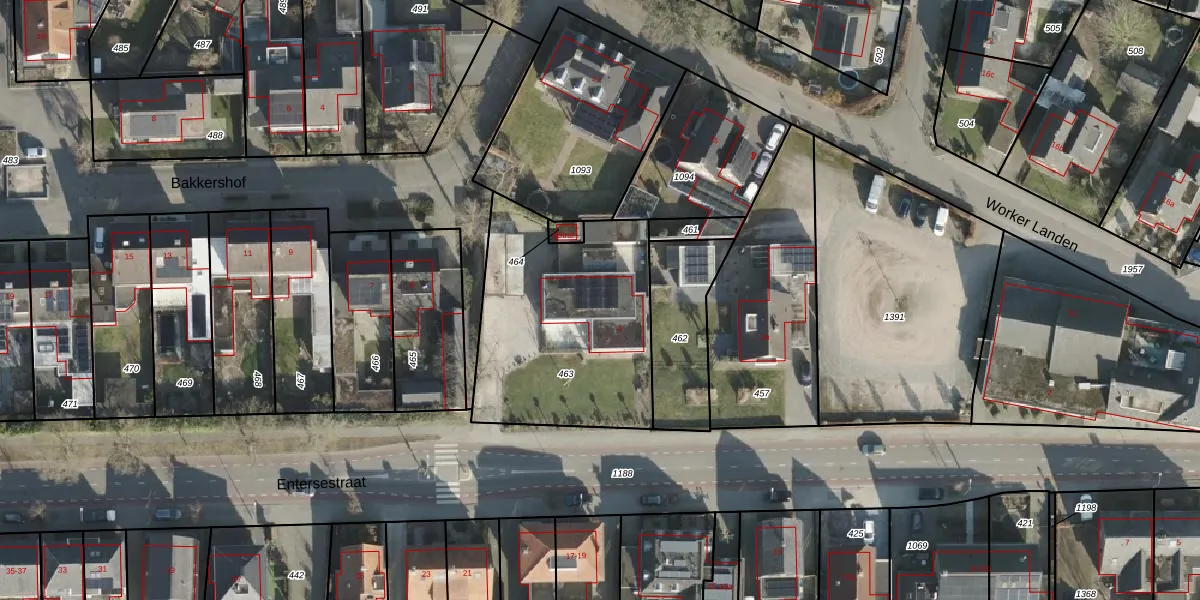 Het perceel waarop Entersestraat 4 staat heeft een oppervlakte van 974 m². Dit is een groot perceel. De perceeloppervlakte wordt geregistreerd door het Kadaster. Gedetailleerde informatie over de maten van dit perceel kunt u vinden in het rapport Kadastrale kaart met maatvoering van Entersestraat 4.