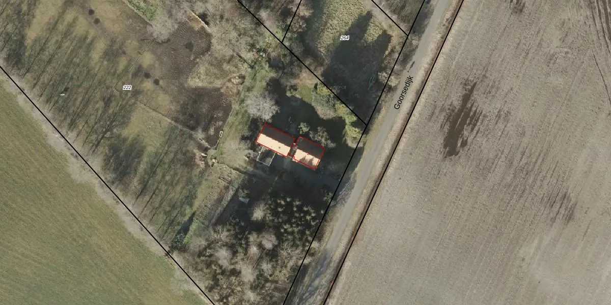 Het perceel waarop Goorsedijk 2 staat heeft een oppervlakte van 9720 m². Dit is een zeer groot perceel. De perceeloppervlakte wordt geregistreerd door het Kadaster. Gedetailleerde informatie over de maten van dit perceel kunt u vinden in het rapport Kadastrale kaart met maatvoering van Goorsedijk 2.