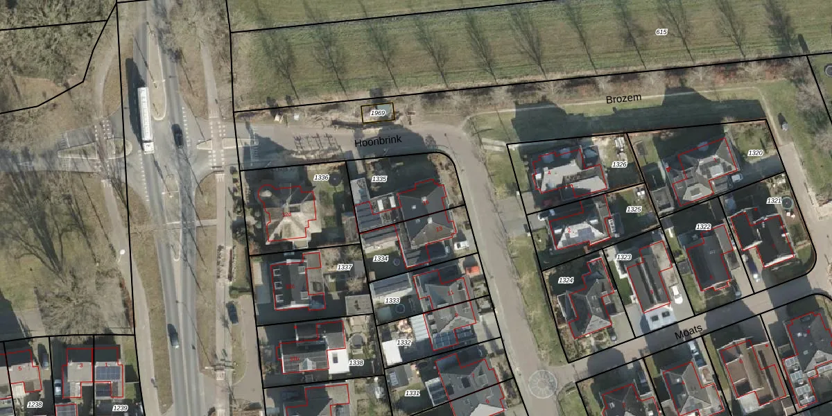 Het perceel waarop Hoonbrink 15 staat heeft een oppervlakte van 398 m². Dit is een groot perceel. De perceeloppervlakte wordt geregistreerd door het Kadaster. Gedetailleerde informatie over de maten van dit perceel kunt u vinden in het rapport Kadastrale kaart met maatvoering van Hoonbrink 15.