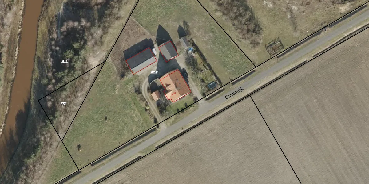Ossendijk 3-a is gelegen op kadastraal perceel AML01P1343. Deze kadastrale aanduiding is uniek en wordt gebruikt door het Kadaster om eigendomsrechten en andere zakelijke rechten vast te leggen. Het perceel maakt onderdeel uit van de kadastrale gemeente Ambt-Almelo.