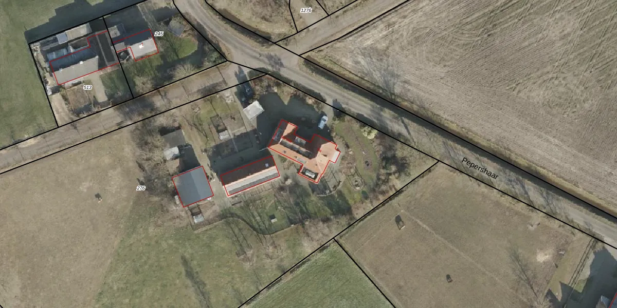 Het perceel waarop Pepershaar 5-a staat heeft een oppervlakte van 8970 m². Dit is een zeer groot perceel. De perceeloppervlakte wordt geregistreerd door het Kadaster. Gedetailleerde informatie over de maten van dit perceel kunt u vinden in het rapport Kadastrale kaart met maatvoering van Pepershaar 5-a.
