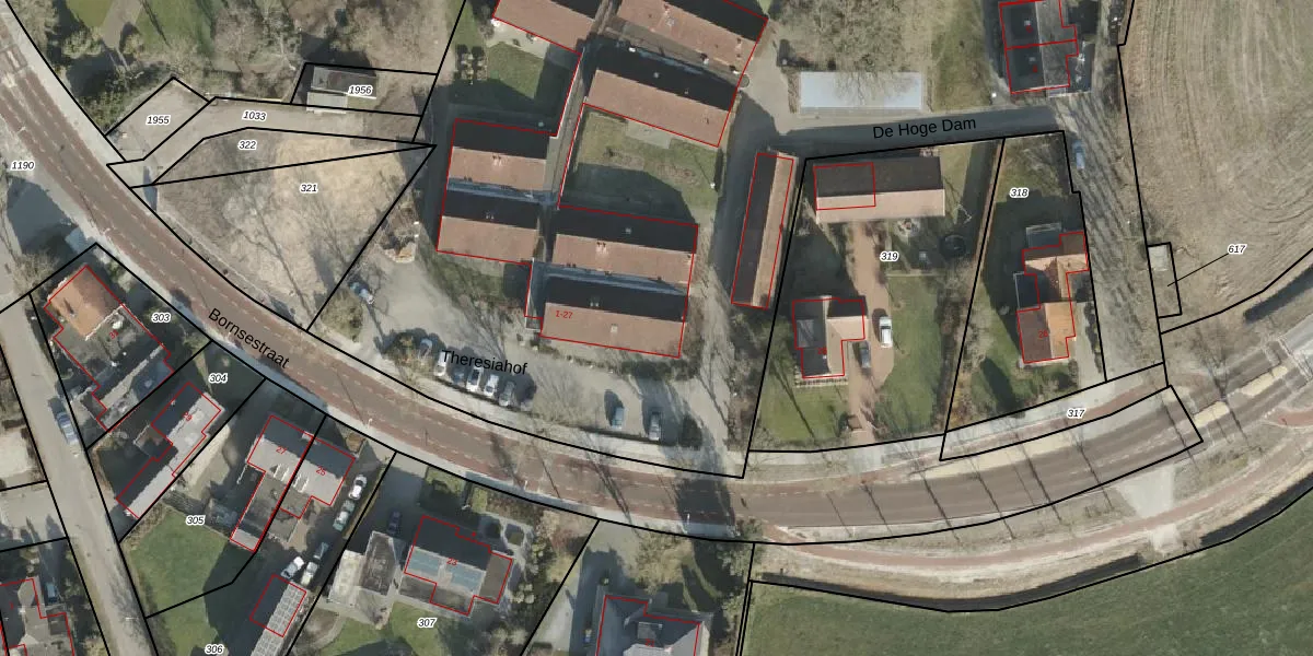 Theresiahof 5 is gelegen op kadastraal perceel AML01O1034. Deze kadastrale aanduiding is uniek en wordt gebruikt door het Kadaster om eigendomsrechten en andere zakelijke rechten vast te leggen. Het perceel maakt onderdeel uit van de kadastrale gemeente Ambt-Almelo.