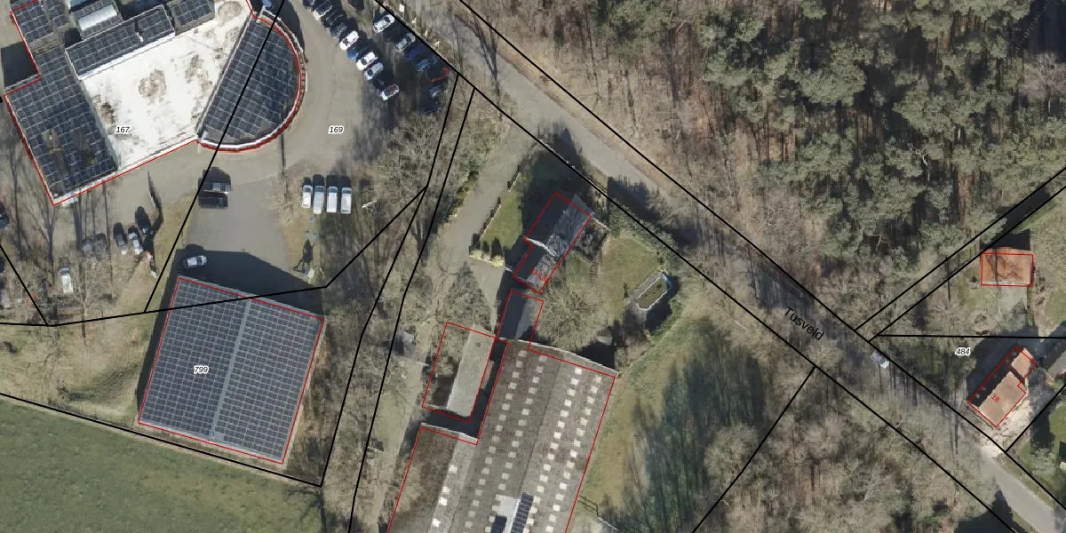 Het perceel waarop Tusveld 13-a staat heeft een oppervlakte van 9840 m². Dit is een zeer groot perceel. De perceeloppervlakte wordt geregistreerd door het Kadaster. Gedetailleerde informatie over de maten van dit perceel kunt u vinden in het rapport Kadastrale kaart met maatvoering van Tusveld 13-a.