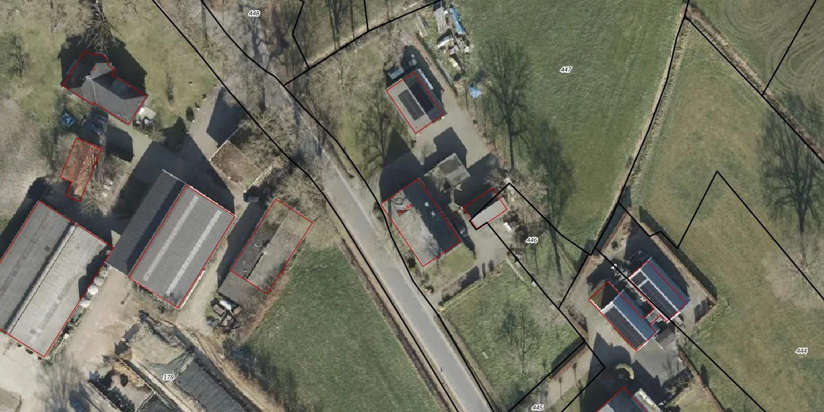 Het perceel waarop het adres ligt is AML01-P-447. De afkorting 'AML01' staat voor kadastrale gemeente Ambt-Almelo. De oppervlakte van het perceel is 5772 m². Dat is groter dan gemiddeld in Ambt-Almelo, waar de gemiddelde perceeloppervlakte op 2069,47 m² ligt. De grootste perceeloppervlakte in de kadastrale gemeente is 67,4 ha. De kleinste oppervlakte bedraagt 0 m². Op het perceel zijn 2 adressen aanwezig. De huidige grenzen van het perceel zijn digitaal in de Basisregistratie Kadaster (BRK) geregistreerd op 16-05-2011.