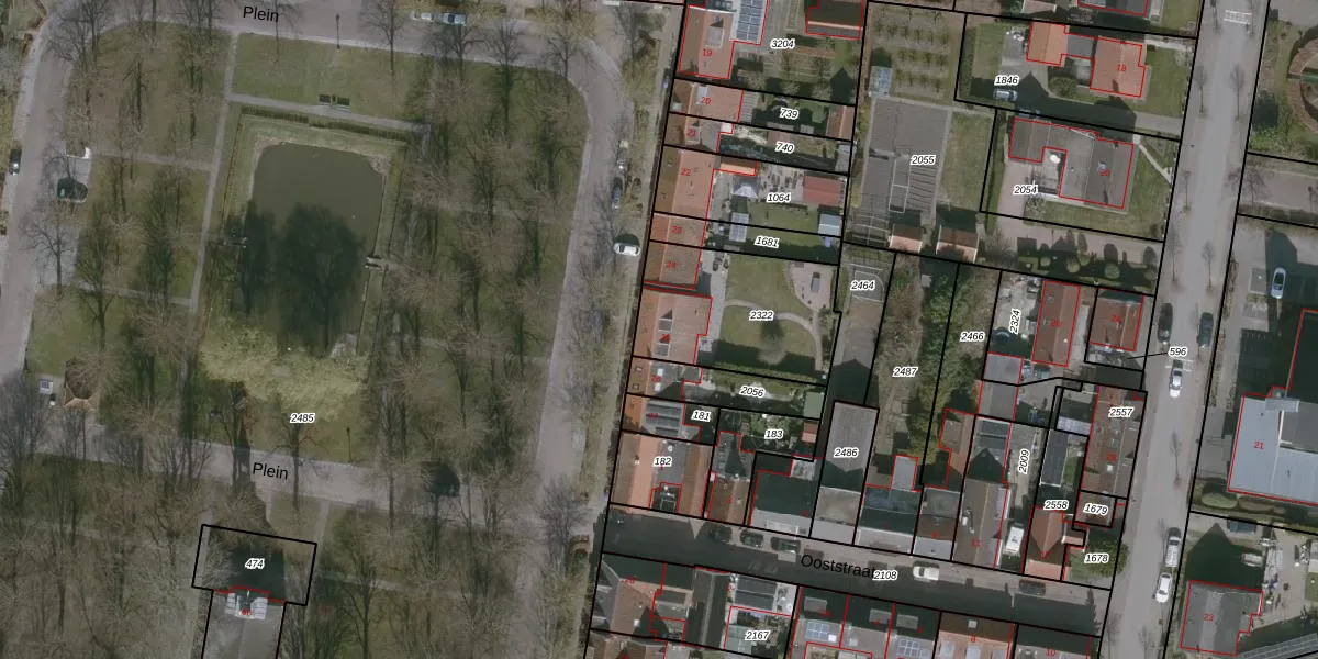 Het perceel waarop Plein 25 staat heeft een oppervlakte van 540 m². Dit is een groot perceel. De perceeloppervlakte wordt geregistreerd door het Kadaster. Gedetailleerde informatie over de maten van dit perceel kunt u vinden in het rapport Kadastrale kaart met maatvoering van Plein 25.
