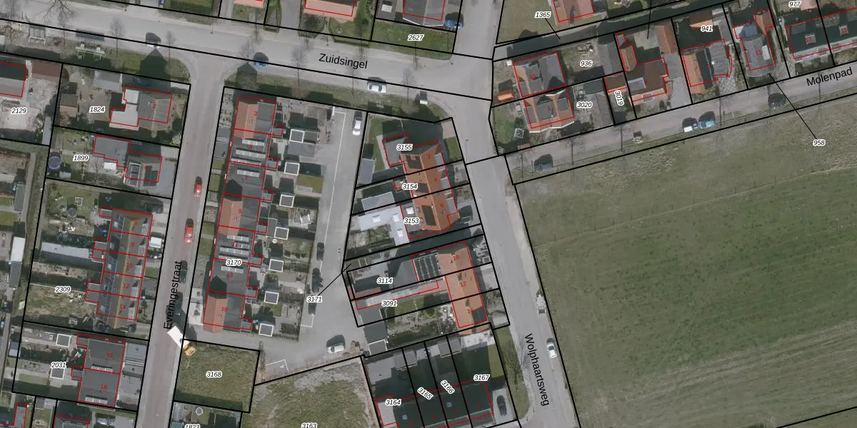 Gebruik de zoekbalk of klik op een perceel voor informatie over de adressen binnen dit perceel.