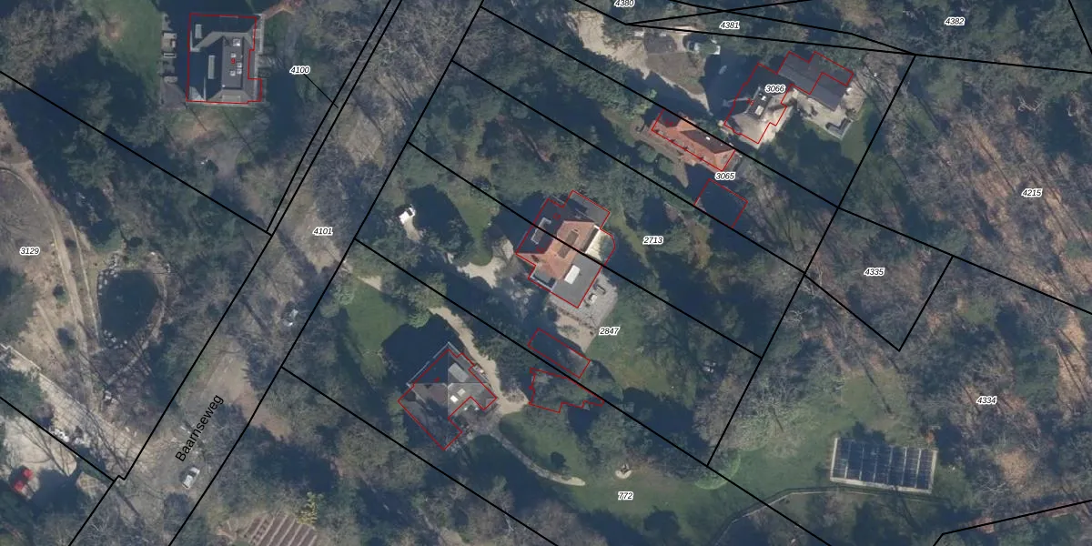 Baarnseweg 10 is gelegen op kadastraal perceel ZEI00K2847. Deze kadastrale aanduiding is uniek en wordt gebruikt door het Kadaster om eigendomsrechten en andere zakelijke rechten vast te leggen. Het perceel maakt onderdeel uit van de kadastrale gemeente Zeist.