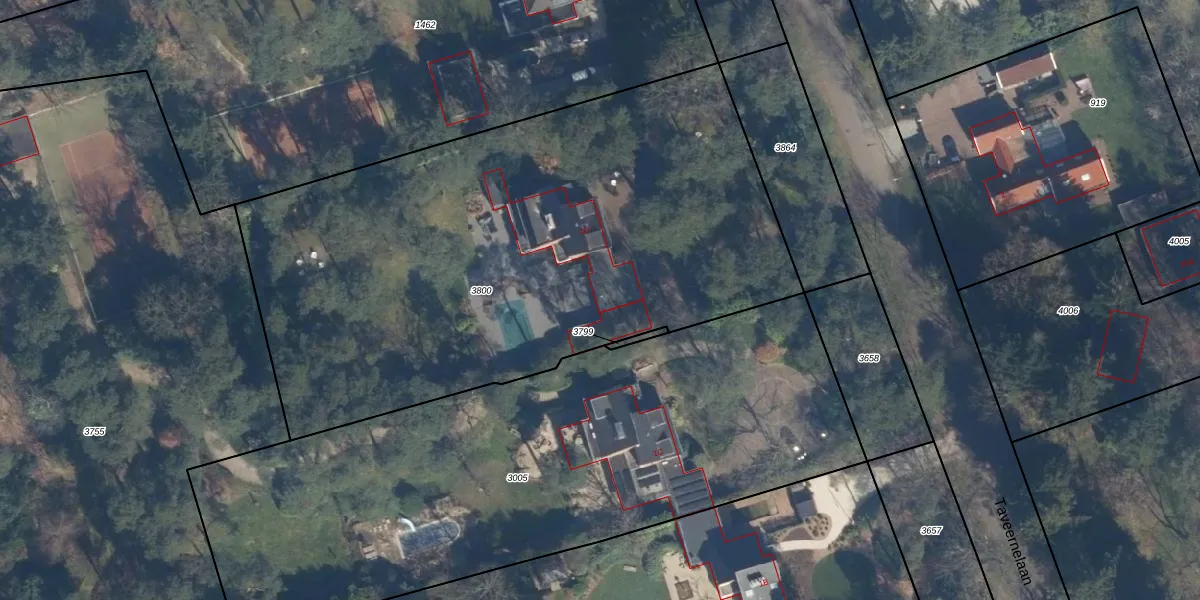Het perceel waarop Taveernelaan 1-D staat heeft een oppervlakte van 3519 m². Dit is een zeer groot perceel. De perceeloppervlakte wordt geregistreerd door het Kadaster. Gedetailleerde informatie over de maten van dit perceel kunt u vinden in het rapport Kadastrale kaart met maatvoering van Taveernelaan 1-D.