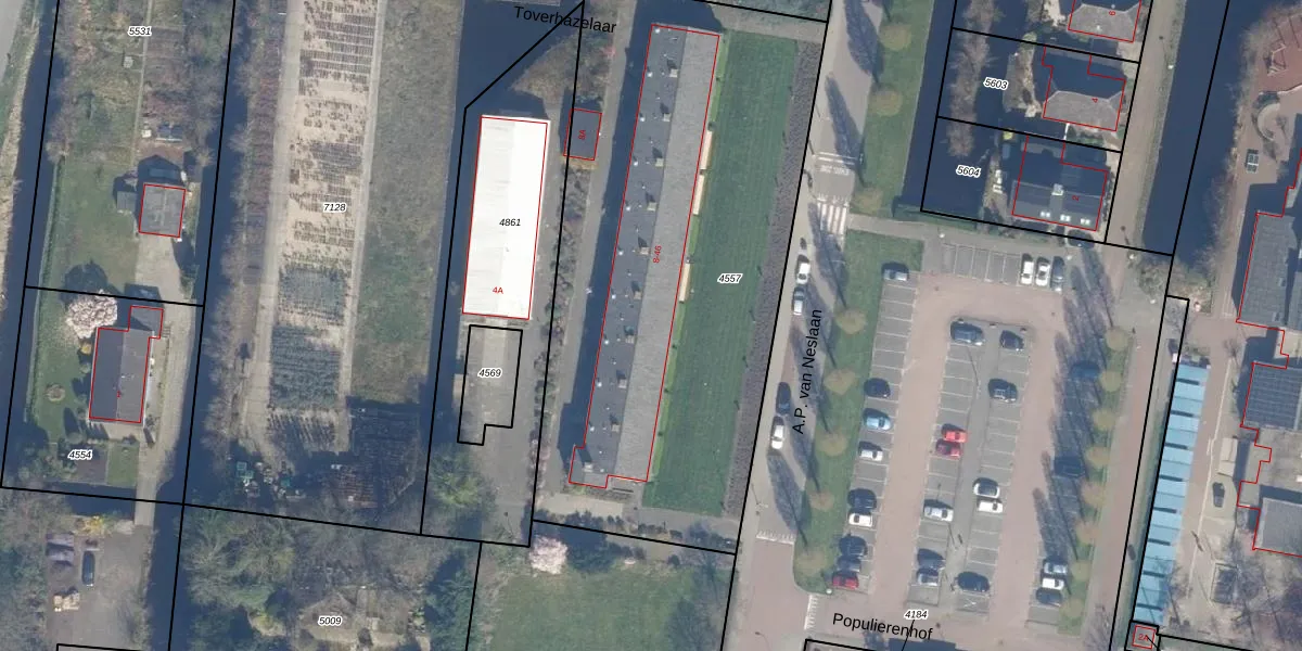 A.P. van Neslaan 14-B is gelegen op kadastraal perceel BKP00B4557. Deze kadastrale aanduiding is uniek en wordt gebruikt door het Kadaster om eigendomsrechten en andere zakelijke rechten vast te leggen. Het perceel maakt onderdeel uit van de kadastrale gemeente Boskoop.