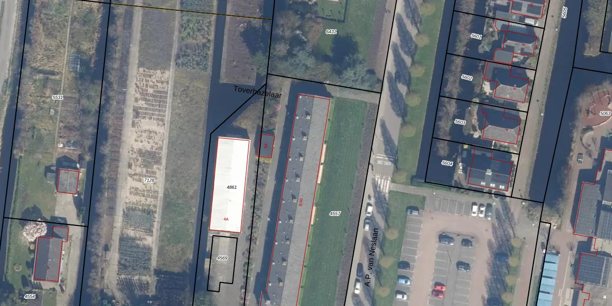 A.P. van Neslaan 26-A is gelegen op kadastraal perceel BKP00B4557. Deze kadastrale aanduiding is uniek en wordt gebruikt door het Kadaster om eigendomsrechten en andere zakelijke rechten vast te leggen. Het perceel maakt onderdeel uit van de kadastrale gemeente Boskoop.
