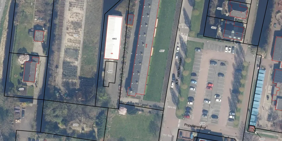 Het perceel waarop A.P. van Neslaan 32 staat heeft een oppervlakte van 2972 m². Dit is een zeer groot perceel. De perceeloppervlakte wordt geregistreerd door het Kadaster. Gedetailleerde informatie over de maten van dit perceel kunt u vinden in het rapport Kadastrale kaart met maatvoering van A.P. van Neslaan 32.