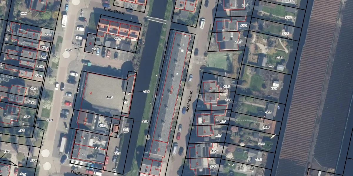 Azalealaan 116 is gelegen op kadastraal perceel BKP00B4627. Deze kadastrale aanduiding is uniek en wordt gebruikt door het Kadaster om eigendomsrechten en andere zakelijke rechten vast te leggen. Het perceel maakt onderdeel uit van de kadastrale gemeente Boskoop.