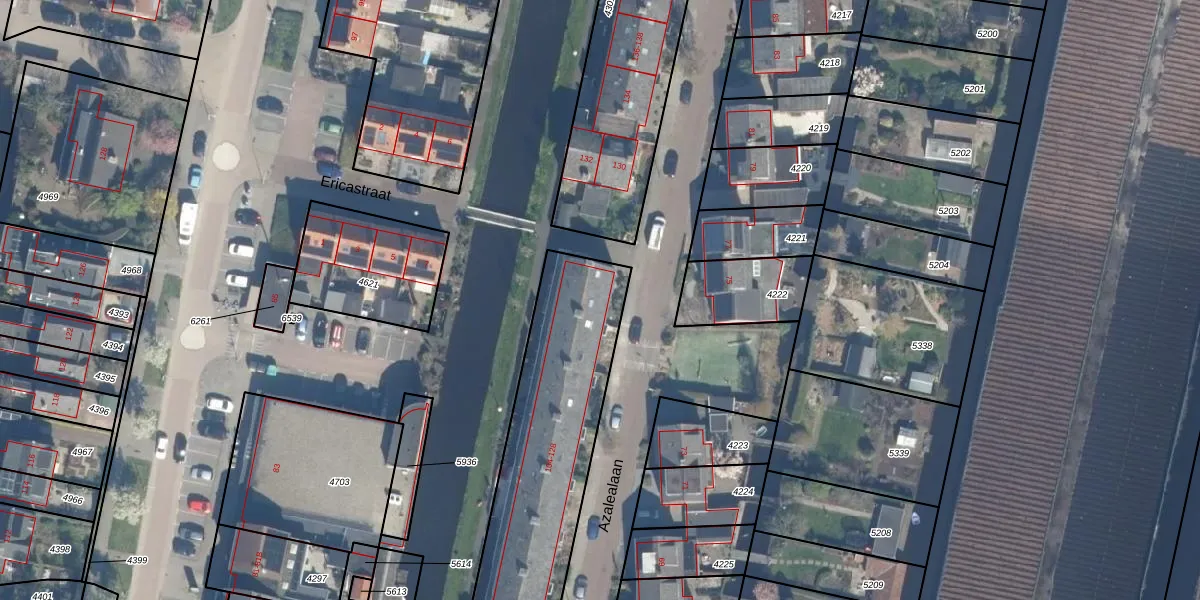 Azalealaan 128 is gelegen op kadastraal perceel BKP00B4627. Deze kadastrale aanduiding is uniek en wordt gebruikt door het Kadaster om eigendomsrechten en andere zakelijke rechten vast te leggen. Het perceel maakt onderdeel uit van de kadastrale gemeente Boskoop.