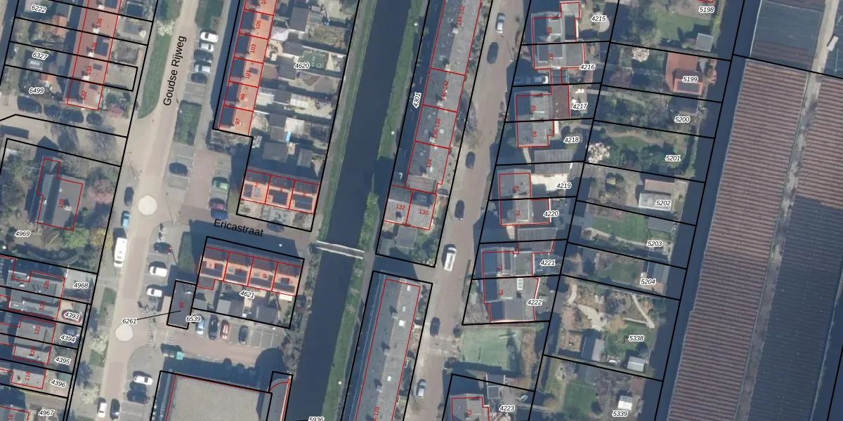 Het adres ligt op het perceel BKP00-B-4301, dat zich in de kadastrale gemeente Boskoop bevindt. De gemiddelde perceelgrootte in Boskoop is 1875,41 m². Dit perceel is kleiner: de perceeloppervlakte bedraagt 1055 m². De grootste perceeloppervlakte in de kadastrale gemeente is 20,7 ha. De kleinste oppervlakte bedraagt 0 m². Op het perceel liggen in totaal 12 adressen. In de Basisregistratie Kadaster (BRK) werden de grenzen van het perceel geregistreerd op 13-11-2001.