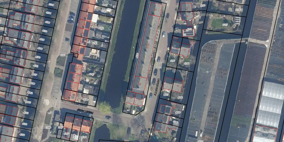Azalealaan 14 is gelegen op kadastraal perceel BKP00B4630. Deze kadastrale aanduiding is uniek en wordt gebruikt door het Kadaster om eigendomsrechten en andere zakelijke rechten vast te leggen. Het perceel maakt onderdeel uit van de kadastrale gemeente Boskoop.