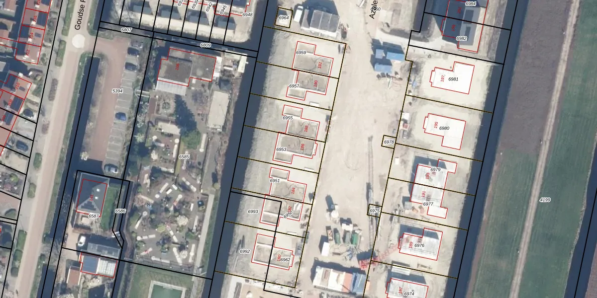 Azalealaan 186 is gelegen op kadastraal perceel BKP00B6953. Deze kadastrale aanduiding is uniek en wordt gebruikt door het Kadaster om eigendomsrechten en andere zakelijke rechten vast te leggen. Het perceel maakt onderdeel uit van de kadastrale gemeente Boskoop.