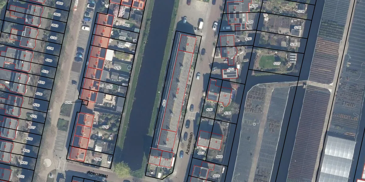 Azalealaan 20 is gelegen op kadastraal perceel BKP00B4630. Deze kadastrale aanduiding is uniek en wordt gebruikt door het Kadaster om eigendomsrechten en andere zakelijke rechten vast te leggen. Het perceel maakt onderdeel uit van de kadastrale gemeente Boskoop.