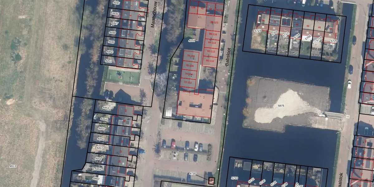 Het perceel waarop Babsloot 70 staat heeft een oppervlakte van 1530 m². Dit is een zeer groot perceel. De perceeloppervlakte wordt geregistreerd door het Kadaster. Gedetailleerde informatie over de maten van dit perceel kunt u vinden in het rapport Kadastrale kaart met maatvoering van Babsloot 70.