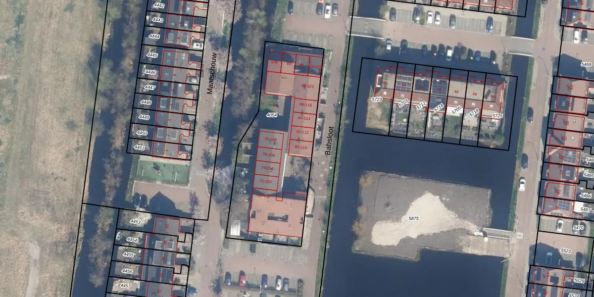 Babsloot 80 is gelegen op kadastraal perceel BKP00A4054. Deze kadastrale aanduiding is uniek en wordt gebruikt door het Kadaster om eigendomsrechten en andere zakelijke rechten vast te leggen. Het perceel maakt onderdeel uit van de kadastrale gemeente Boskoop.