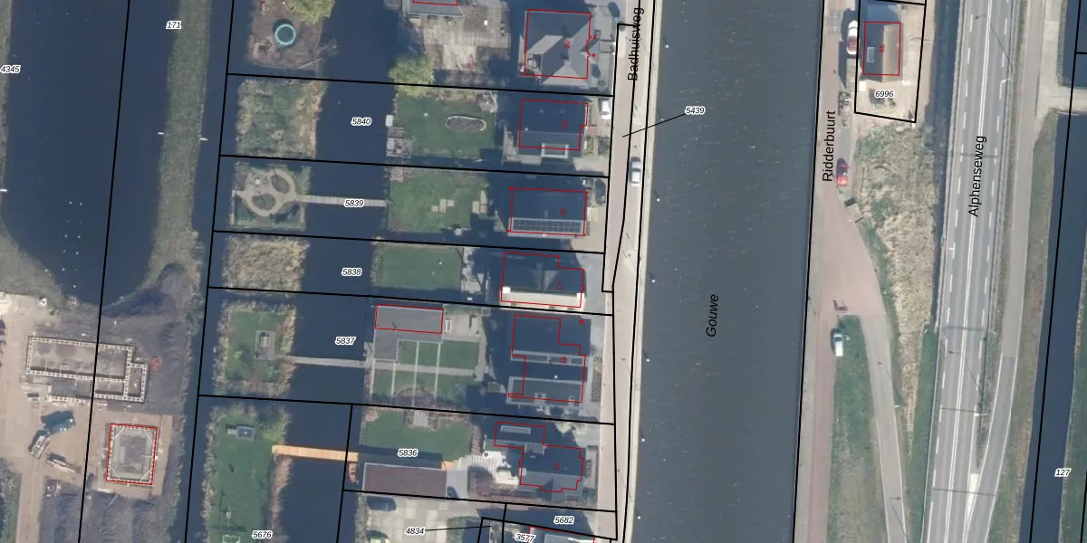 Badhuisweg 17 is gelegen op kadastraal perceel BKP00A5838. Deze kadastrale aanduiding is uniek en wordt gebruikt door het Kadaster om eigendomsrechten en andere zakelijke rechten vast te leggen. Het perceel maakt onderdeel uit van de kadastrale gemeente Boskoop.