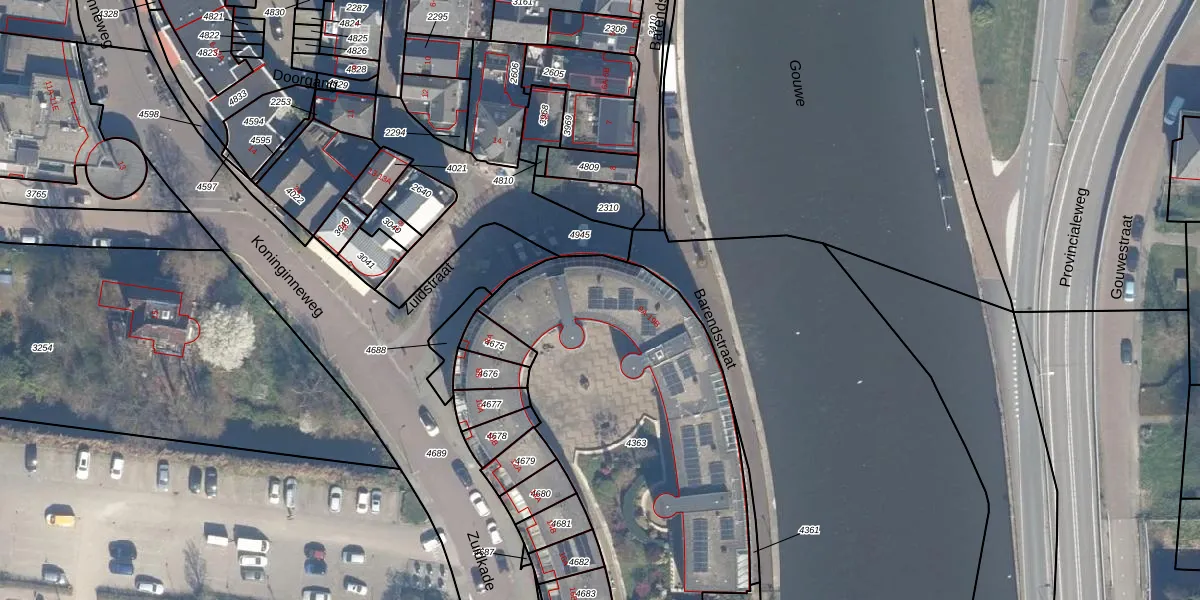 Het adres ligt op het perceel BKP00-D-4363, dat zich in de kadastrale gemeente Boskoop bevindt. Het perceel is 1725 m² groot. Dat is kleiner dan de gemiddelde perceeloppervlakte in Boskoop, dat op 1881,03 m² ligt. De grootste perceeloppervlakte in de kadastrale gemeente is 20,7 ha. De kleinste oppervlakte bedraagt 0 m². Er zijn 22 adressen aanwezig op het perceel. De huidige grenzen van het perceel zijn digitaal in de Basisregistratie Kadaster (BRK) geregistreerd op 30-08-2023.