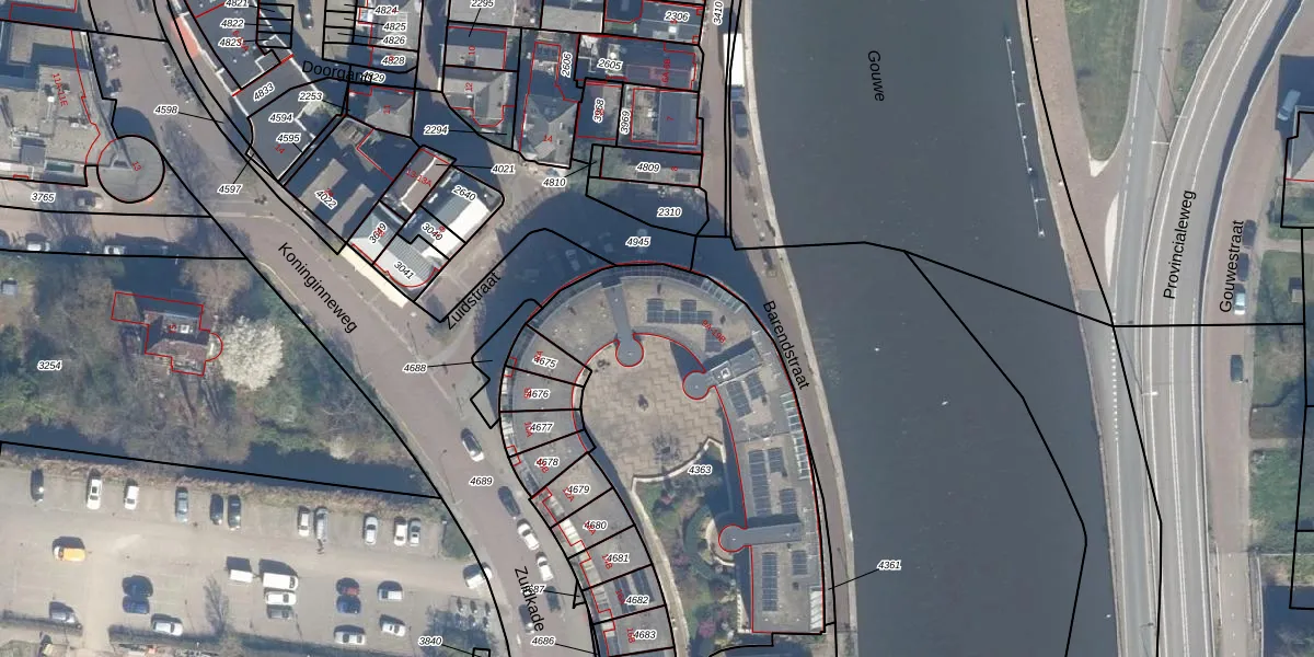Het adres ligt op het perceel BKP00-D-4363, dat zich in de kadastrale gemeente Boskoop bevindt. Het perceel is 1725 m² groot. Dat is kleiner dan de gemiddelde perceeloppervlakte in Boskoop, dat op 1881,03 m² ligt. Het kleinste perceel in de kadastrale gemeente is 0 m² groot. De grootste perceeloppervlakte is 20,7 ha. Er zijn 22 adressen aanwezig op het perceel. De laatste wijziging in het de Basisregistratie Kadaster (BRK) was op 30-08-2023.