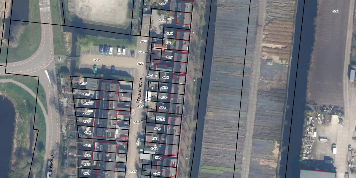 Het adres ligt op het perceel BKP00-A-4675, dat zich in de kadastrale gemeente Boskoop bevindt. De gemiddelde perceelgrootte in Boskoop is 1881,03 m². Dit perceel is kleiner: de perceeloppervlakte bedraagt 77 m². De grootste perceeloppervlakte in de kadastrale gemeente is 20,7 ha. De kleinste oppervlakte bedraagt 0 m². Er zijn geen andere adressen aanwezig op het perceel. In de Basisregistratie Kadaster (BRK) werden de grenzen van het perceel geregistreerd op 12-07-2001.