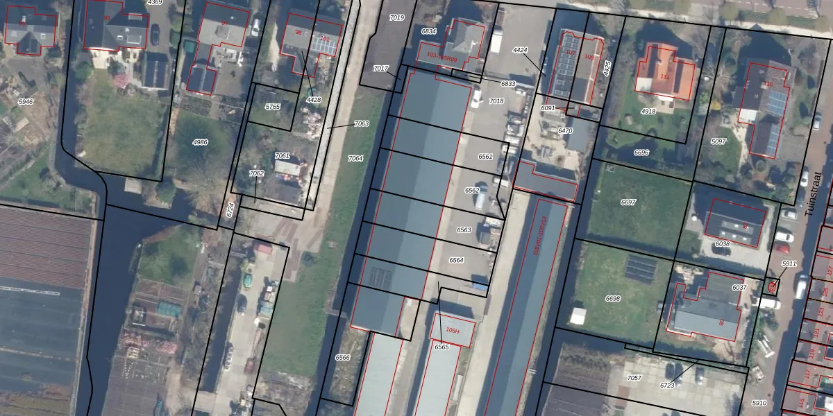 Het perceel waarop het adres ligt is BKP00-B-6563. De afkorting 'BKP00' staat voor kadastrale gemeente Boskoop. De gemiddelde perceelgrootte in Boskoop is 1881,03 m². Dit perceel is kleiner: de perceeloppervlakte bedraagt 268 m². Het kleinste perceel in de kadastrale gemeente is 0 m² groot. De grootste perceeloppervlakte is 20,7 ha. Er zijn geen andere adressen aanwezig op het perceel. De huidige grenzen van het perceel zijn digitaal in de Basisregistratie Kadaster (BRK) geregistreerd op 24-10-2018.