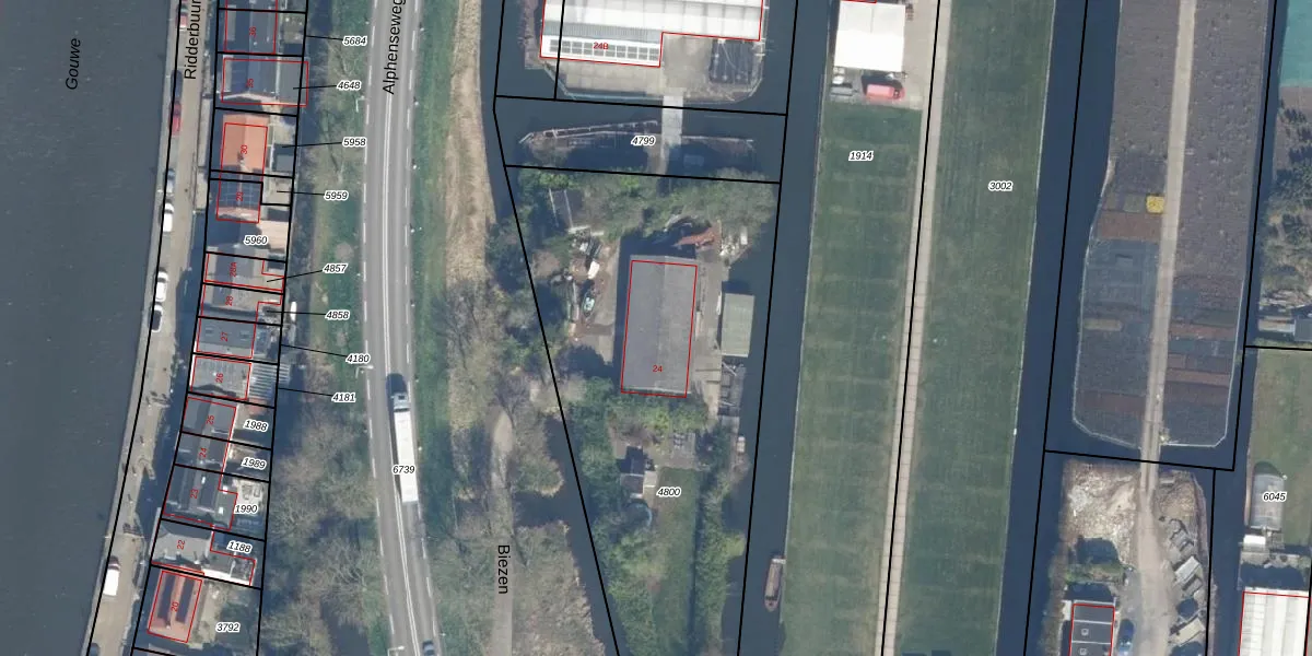 Biezen 24 is gelegen op kadastraal perceel BKP00B4800. Deze kadastrale aanduiding is uniek en wordt gebruikt door het Kadaster om eigendomsrechten en andere zakelijke rechten vast te leggen. Het perceel maakt onderdeel uit van de kadastrale gemeente Boskoop.