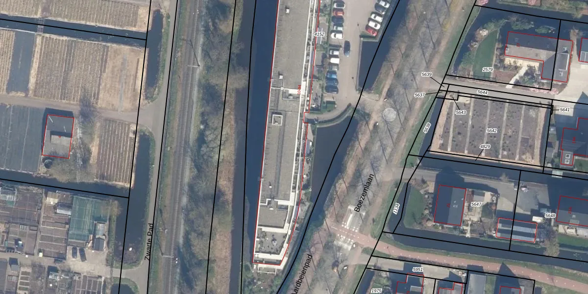 Het perceel waarop Boezemlaan 12 staat heeft een oppervlakte van 5640 m². Dit is een zeer groot perceel. De perceeloppervlakte wordt geregistreerd door het Kadaster. Gedetailleerde informatie over de maten van dit perceel kunt u vinden in het rapport Kadastrale kaart met maatvoering van Boezemlaan 12.