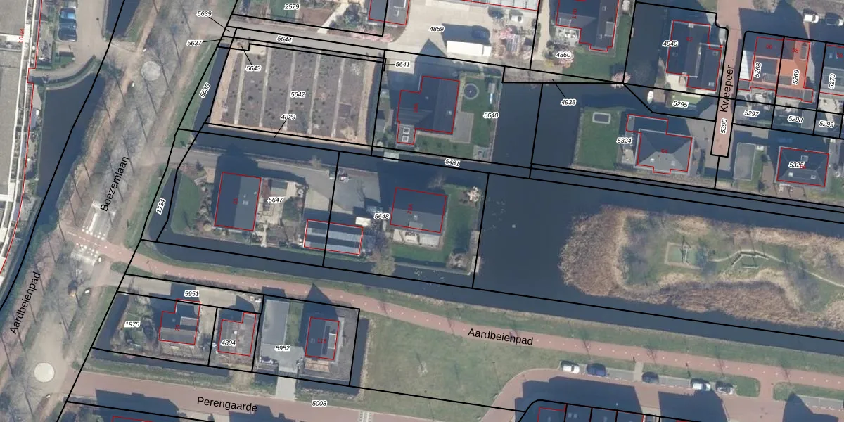 Het perceel waarop het adres ligt is BKP00-D-5648. De afkorting 'BKP00' staat voor kadastrale gemeente Boskoop. De gemiddelde perceelgrootte in Boskoop is 1881,03 m². Dit perceel is kleiner: de perceeloppervlakte bedraagt 1030 m². De grootste perceeloppervlakte in de kadastrale gemeente is 20,7 ha. De kleinste oppervlakte bedraagt 0 m². Dit is het enige adres dat aanwezig is op het perceel. De laatste wijziging in het de Basisregistratie Kadaster (BRK) was op 10-10-2019.