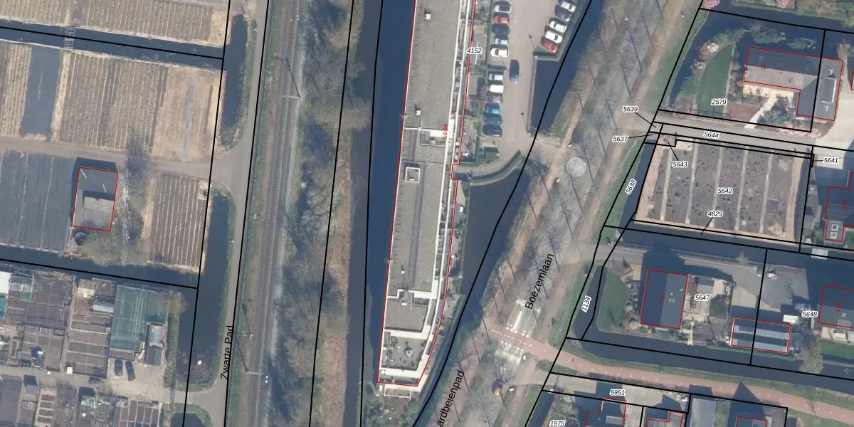 Het perceel waarop Boezemlaan 34 staat heeft een oppervlakte van 5640 m². Dit is een zeer groot perceel. De perceeloppervlakte wordt geregistreerd door het Kadaster. Gedetailleerde informatie over de maten van dit perceel kunt u vinden in het rapport Kadastrale kaart met maatvoering van Boezemlaan 34.