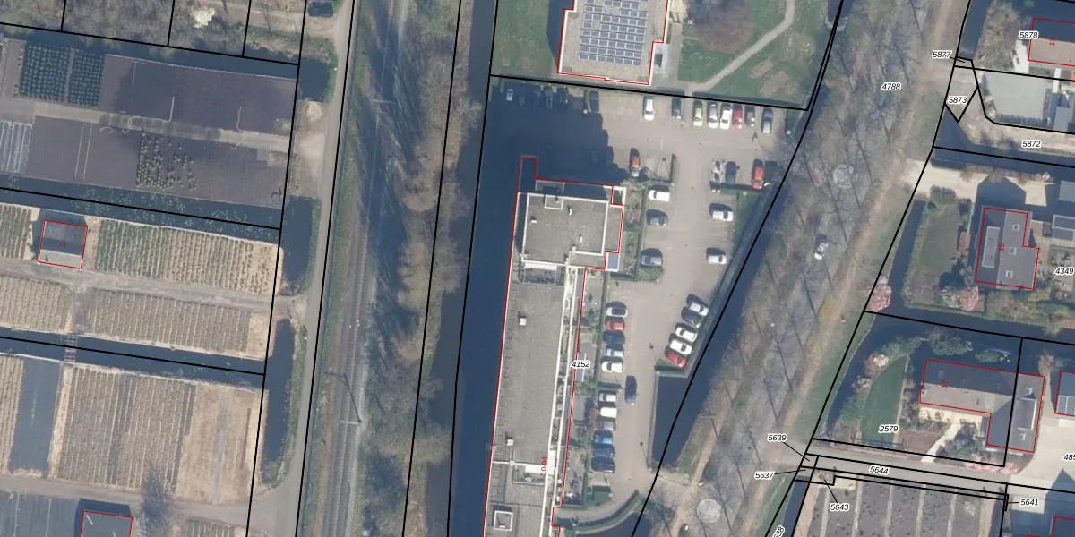 Het adres ligt op het perceel BKP00-D-4152, dat zich in de kadastrale gemeente Boskoop bevindt. De gemiddelde perceeloppervlakte in de kadastrale gemeente Boskoop is 1874,79 m². Dit perceel is met zijn 5640 m² dus groter dan gemiddeld. Het kleinste perceel in de kadastrale gemeente is 0 m² groot. De grootste perceeloppervlakte is 20,7 ha. Op het perceel liggen in totaal 43 adressen. In de Basisregistratie Kadaster (BRK) werden de grenzen van het perceel geregistreerd op 12-02-2007.
