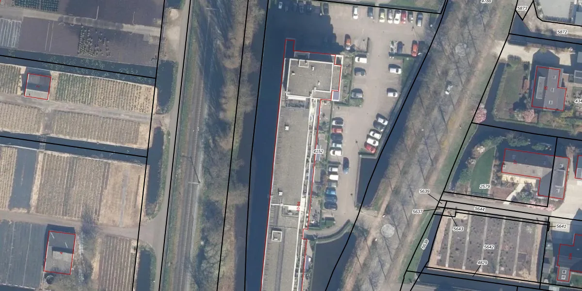 Het adres ligt op het perceel BKP00-D-4152, dat zich in de kadastrale gemeente Boskoop bevindt. De gemiddelde perceeloppervlakte in de kadastrale gemeente Boskoop is 1874,79 m². Dit perceel is met zijn 5640 m² dus groter dan gemiddeld. Het kleinste perceel in de kadastrale gemeente is 0 m² groot. De grootste perceeloppervlakte is 20,7 ha. Op het perceel liggen in totaal 43 adressen. De laatste wijziging in het de Basisregistratie Kadaster (BRK) was op 12-02-2007.