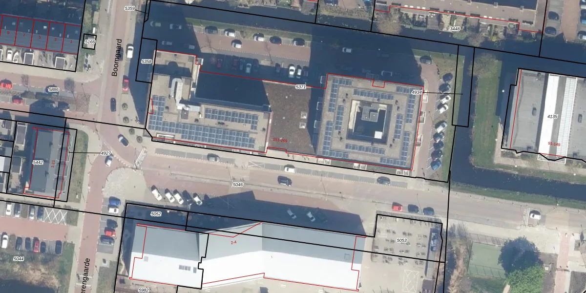 Het perceel waarop Boomgaard 151 staat heeft een oppervlakte van 4960 m². Dit is een zeer groot perceel. De perceeloppervlakte wordt geregistreerd door het Kadaster. Gedetailleerde informatie over de maten van dit perceel kunt u vinden in het rapport Kadastrale kaart met maatvoering van Boomgaard 151.