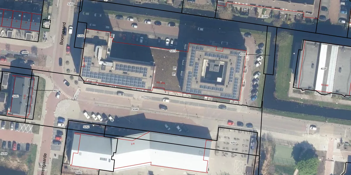 Het perceel waarop Boomgaard 153 staat heeft een oppervlakte van 4960 m². Dit is een zeer groot perceel. De perceeloppervlakte wordt geregistreerd door het Kadaster. Gedetailleerde informatie over de maten van dit perceel kunt u vinden in het rapport Kadastrale kaart met maatvoering van Boomgaard 153.