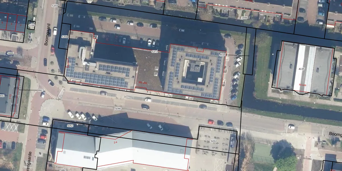 Het perceel waarop Boomgaard 177 staat heeft een oppervlakte van 4960 m². Dit is een zeer groot perceel. De perceeloppervlakte wordt geregistreerd door het Kadaster. Gedetailleerde informatie over de maten van dit perceel kunt u vinden in het rapport Kadastrale kaart met maatvoering van Boomgaard 177.