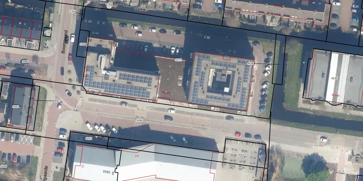Het perceel waarop Boomgaard 193 staat heeft een oppervlakte van 4960 m². Dit is een zeer groot perceel. De perceeloppervlakte wordt geregistreerd door het Kadaster. Gedetailleerde informatie over de maten van dit perceel kunt u vinden in het rapport Kadastrale kaart met maatvoering van Boomgaard 193.
